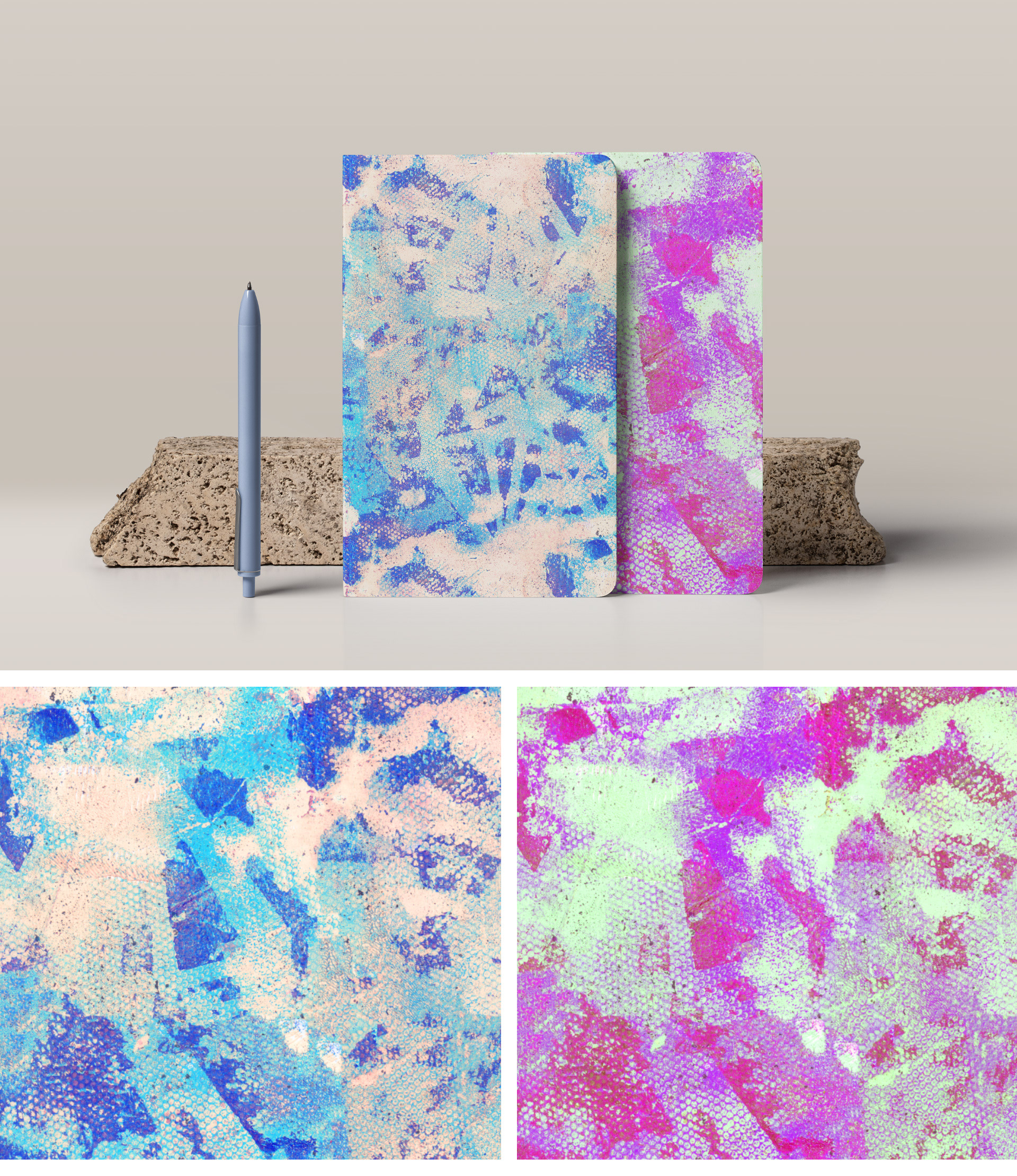 Patterns created by the experimentation of the gelli printing technique.