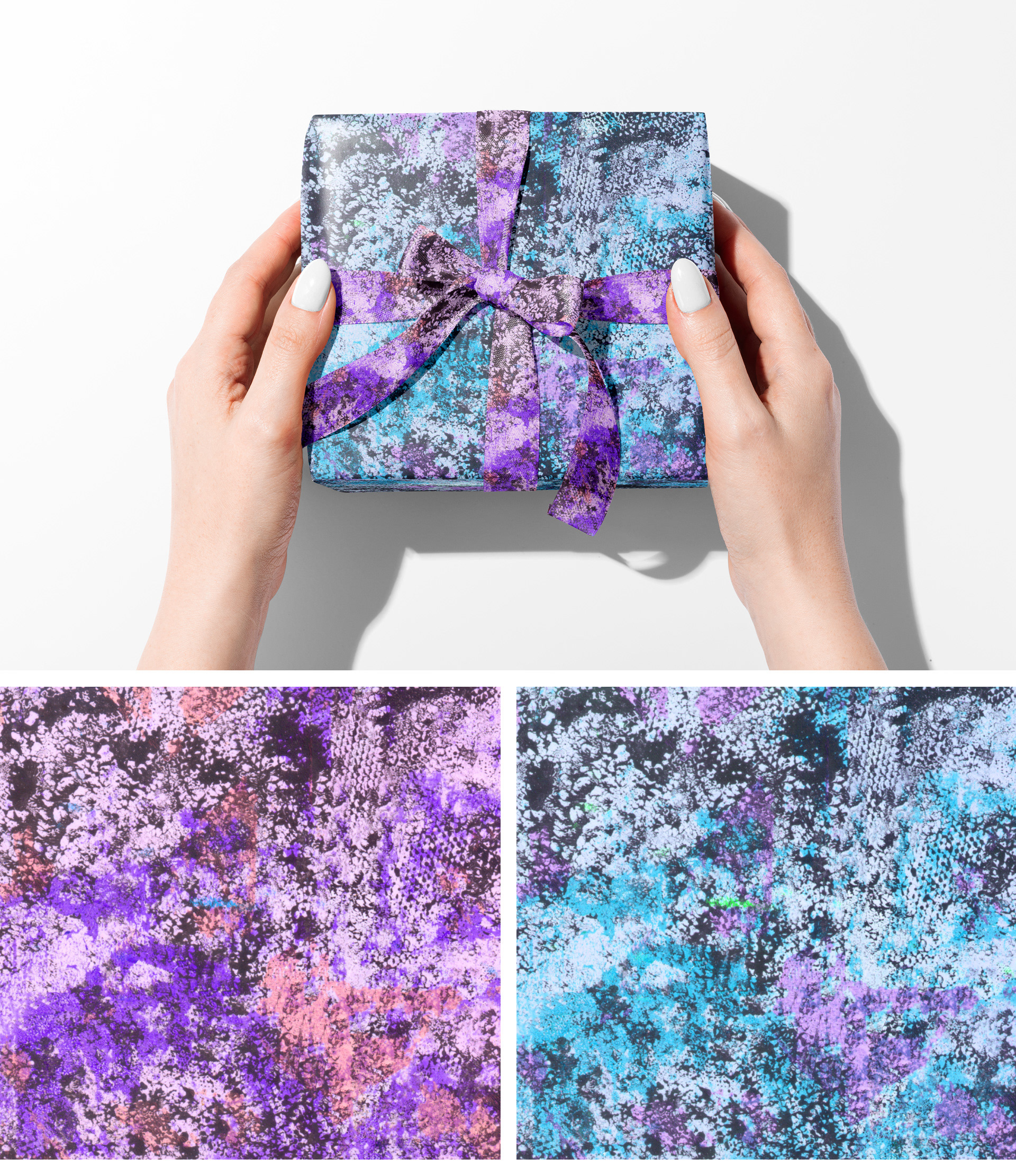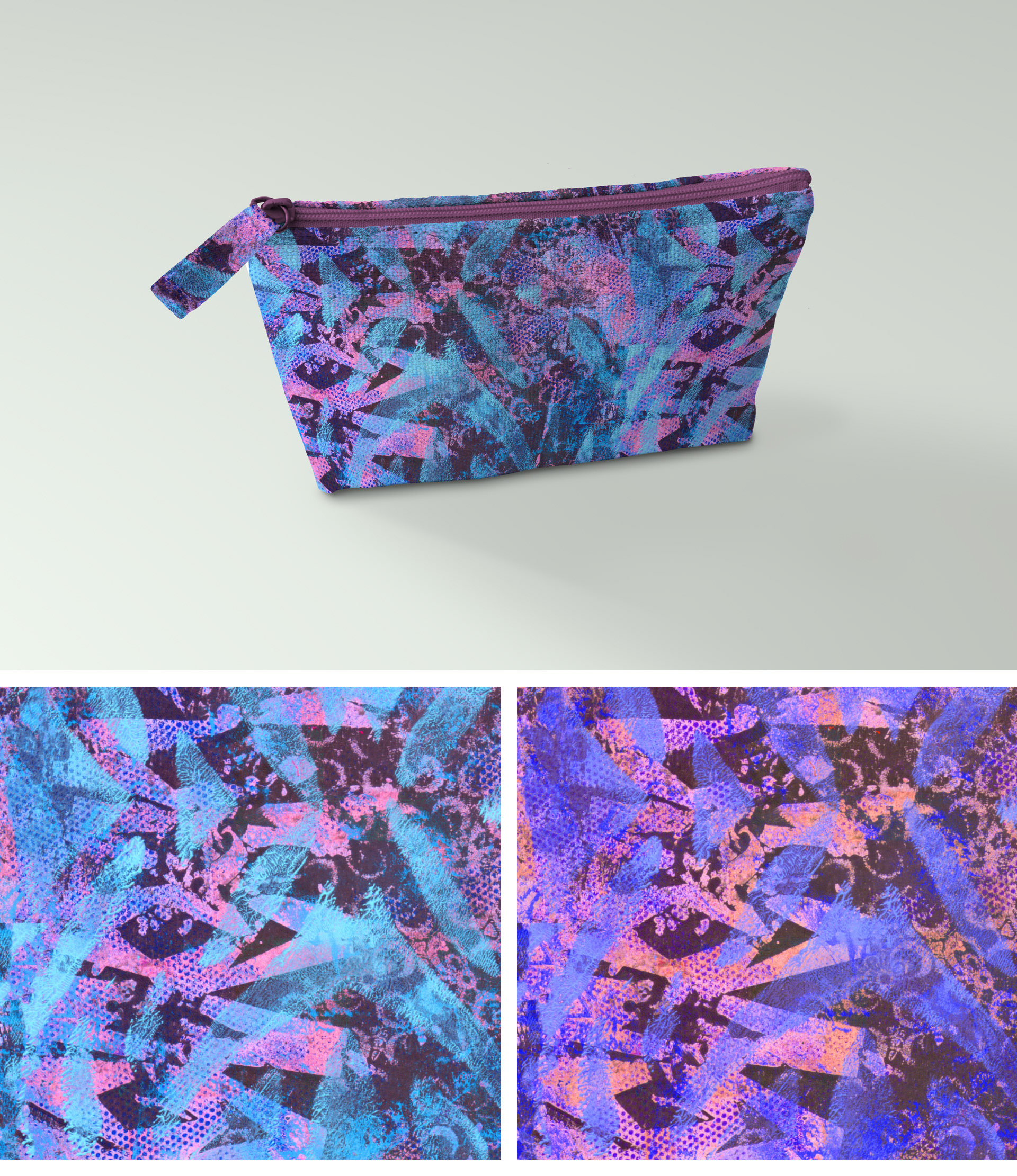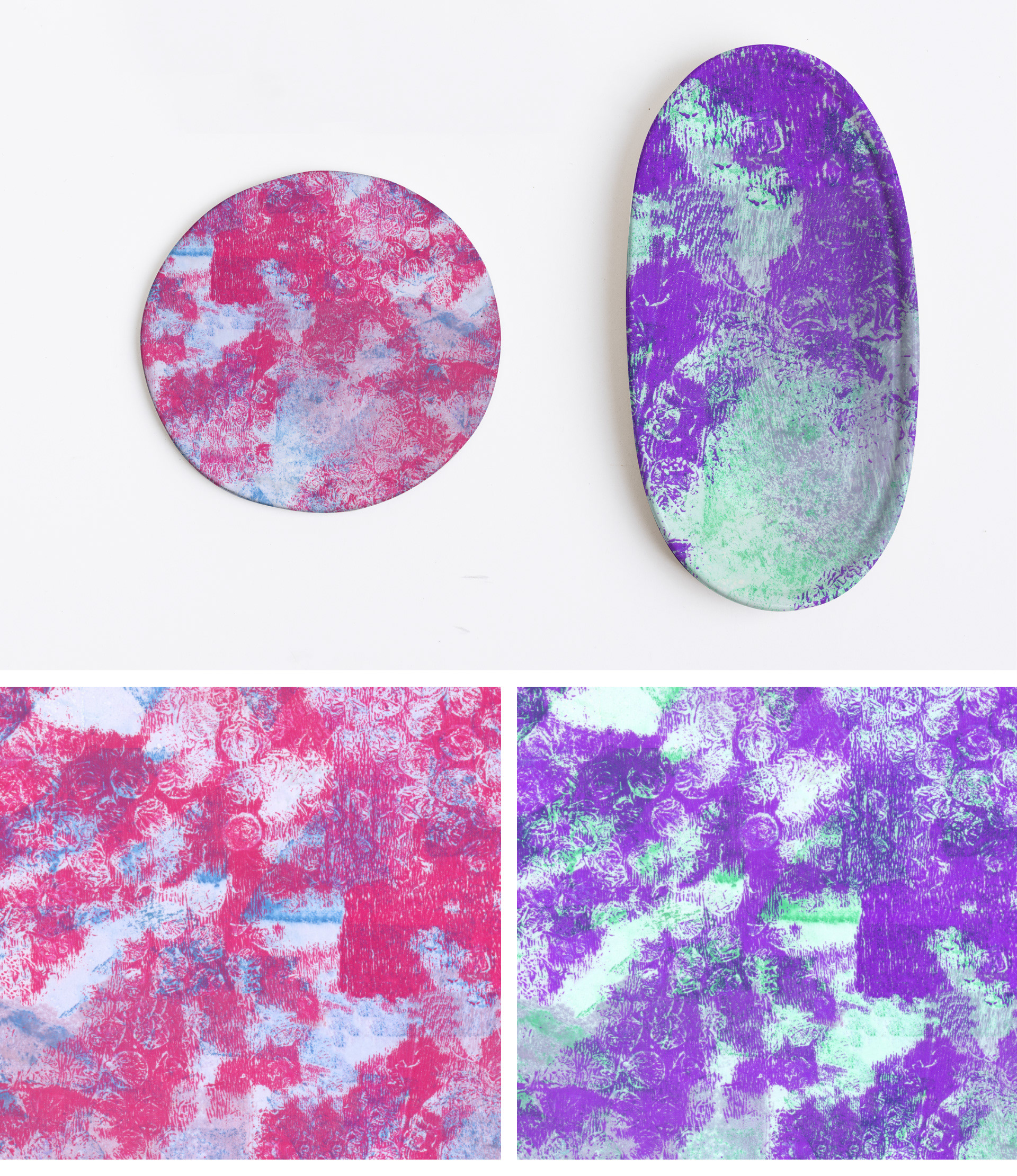 Estampas criadas a partir da experimentação de monotipia a base de gelatina.