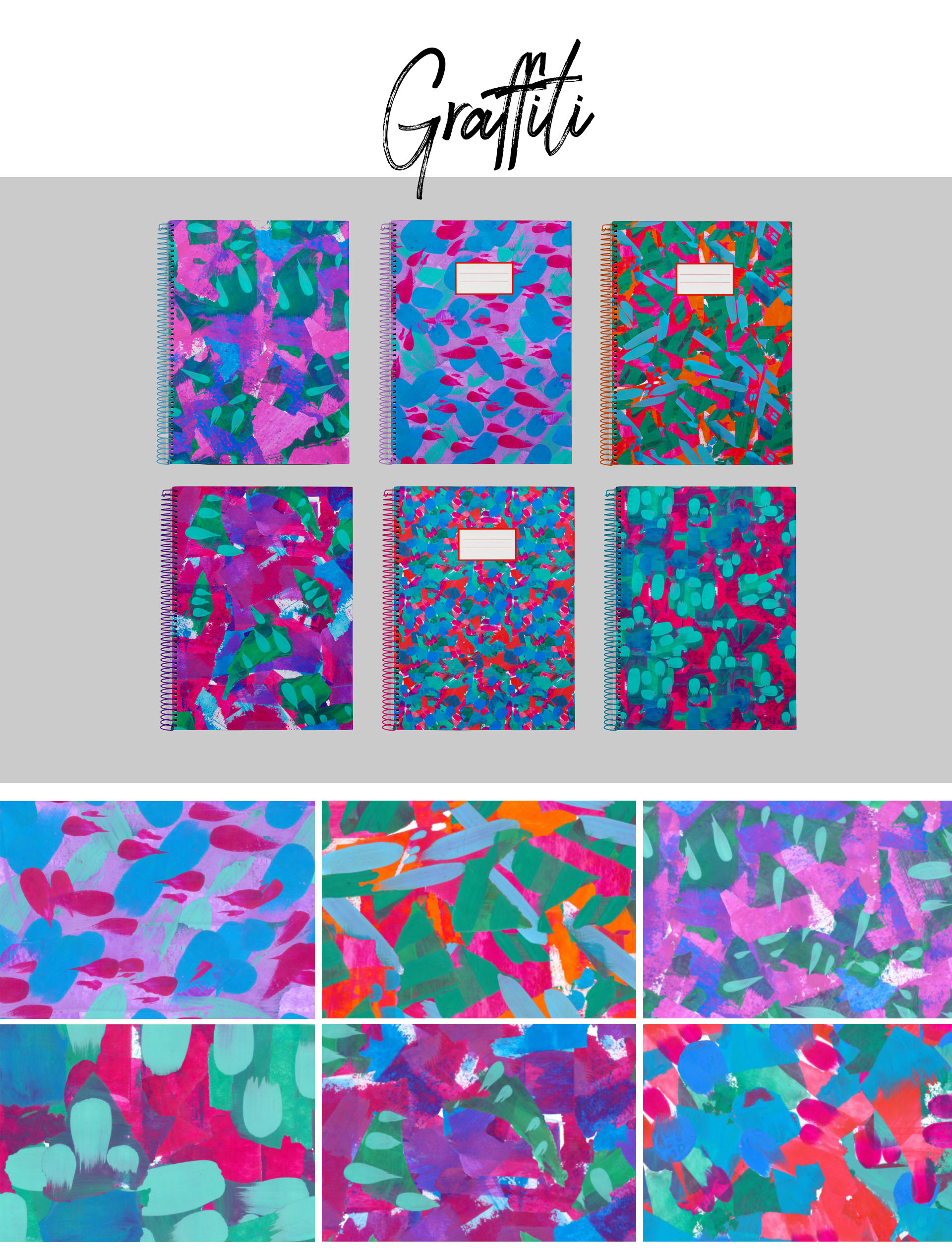 Pattern collection inspired by the grafitti movement. Created from gouache paintings.