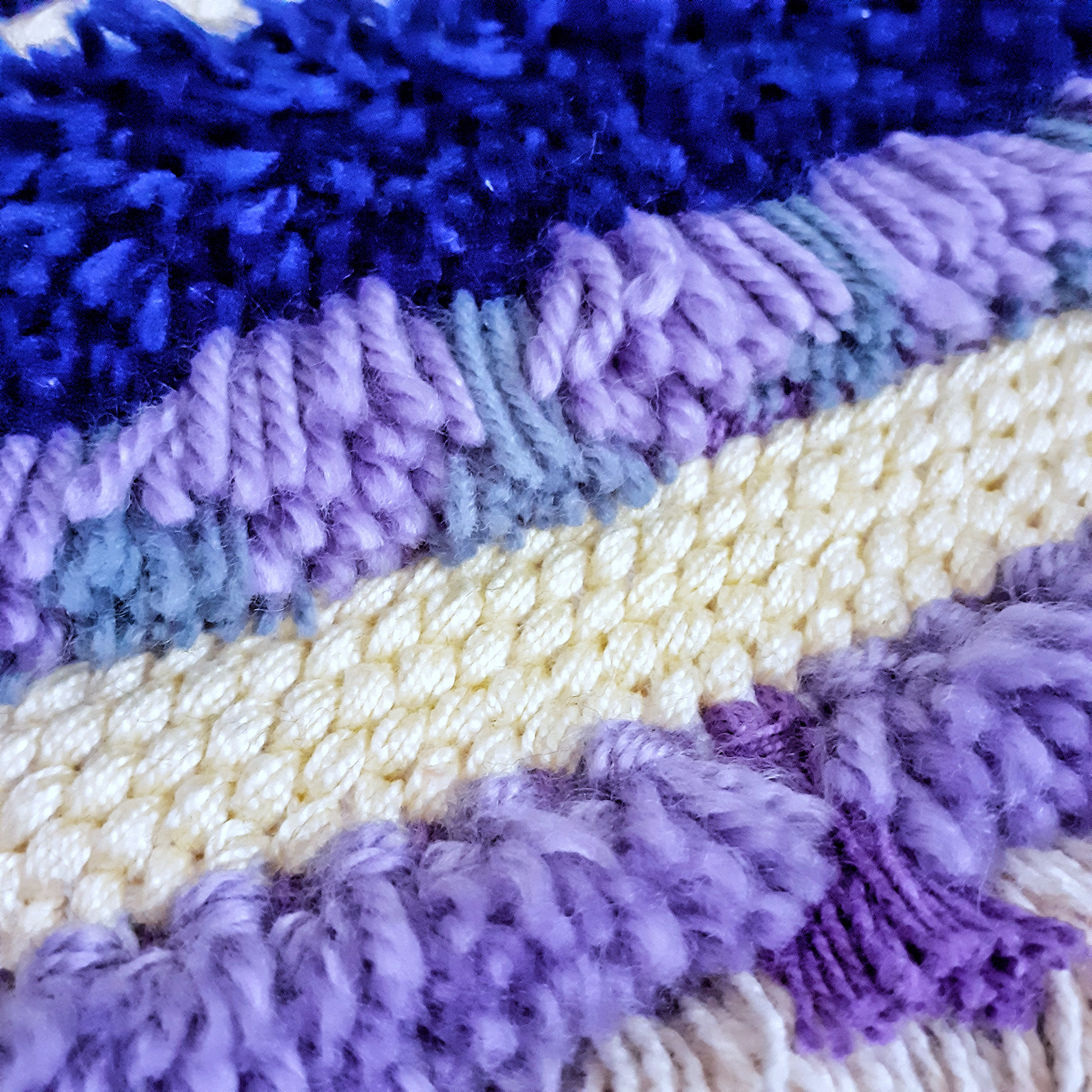 Wall tapestry made with a diverse number of embroidery stitches as the needlepoint, bargello and latch hook.